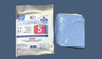 Compresa quirúrgica de gasa estéril 45cm x 45cm.